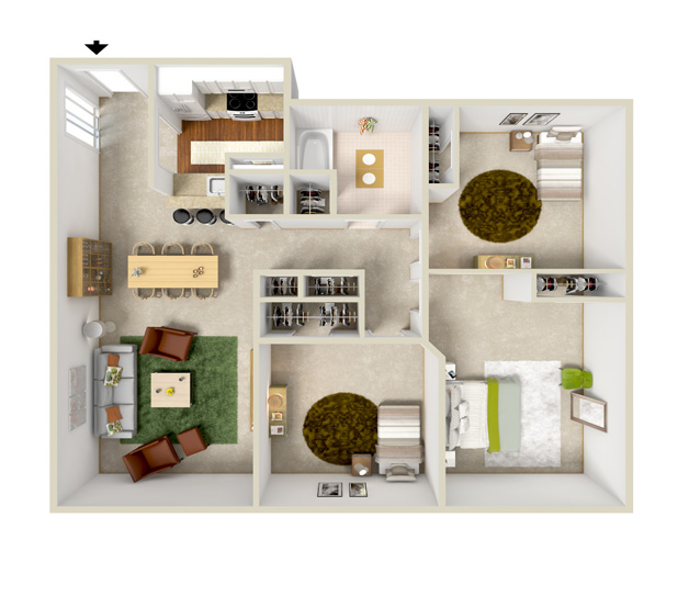 - Three Bedroom - 1050 SF